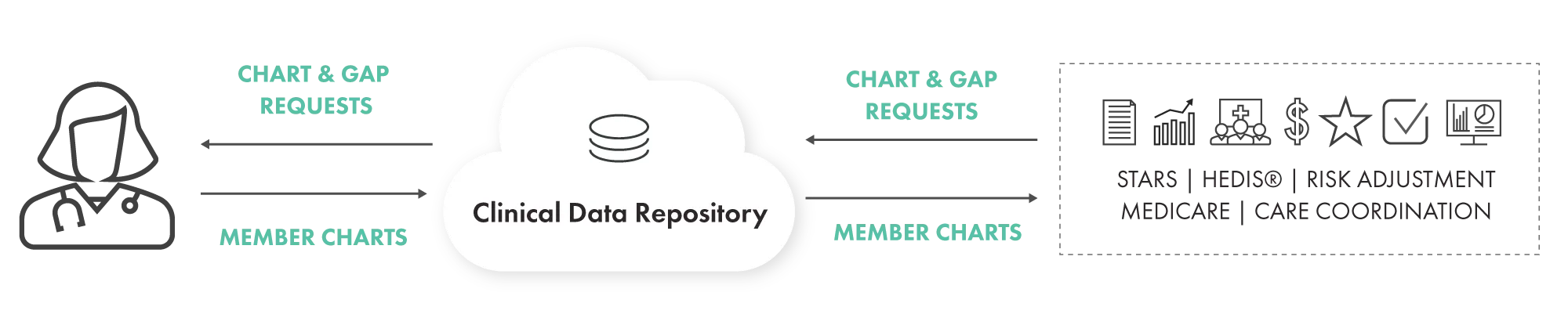 Collect and centralize complete member data with real-time, bi-directional connectivity to practice and hospital EHRs, laboratory systems, and billing systems.